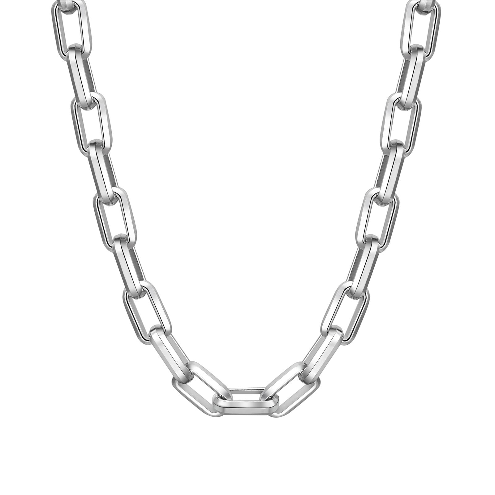 Hip-hop necklace made of stainless steel in steel color with a solid rectangular chain