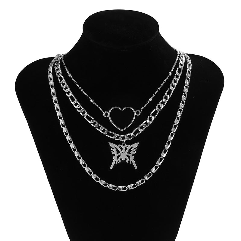 Multi-layered statement necklace with butterfly pendant and heart choker for women