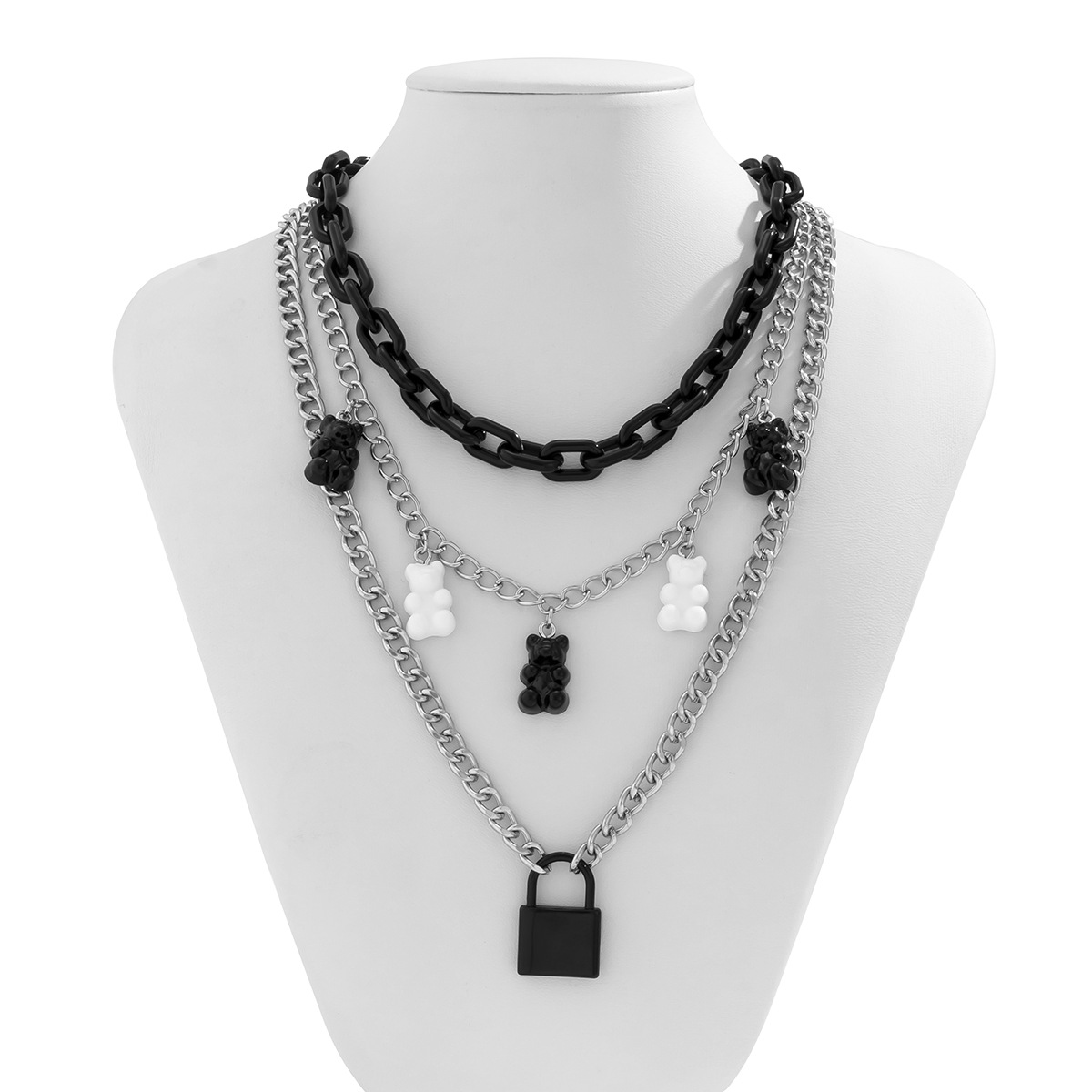 Fashionable multi-layered women's necklace with lock pendant and metal tassels