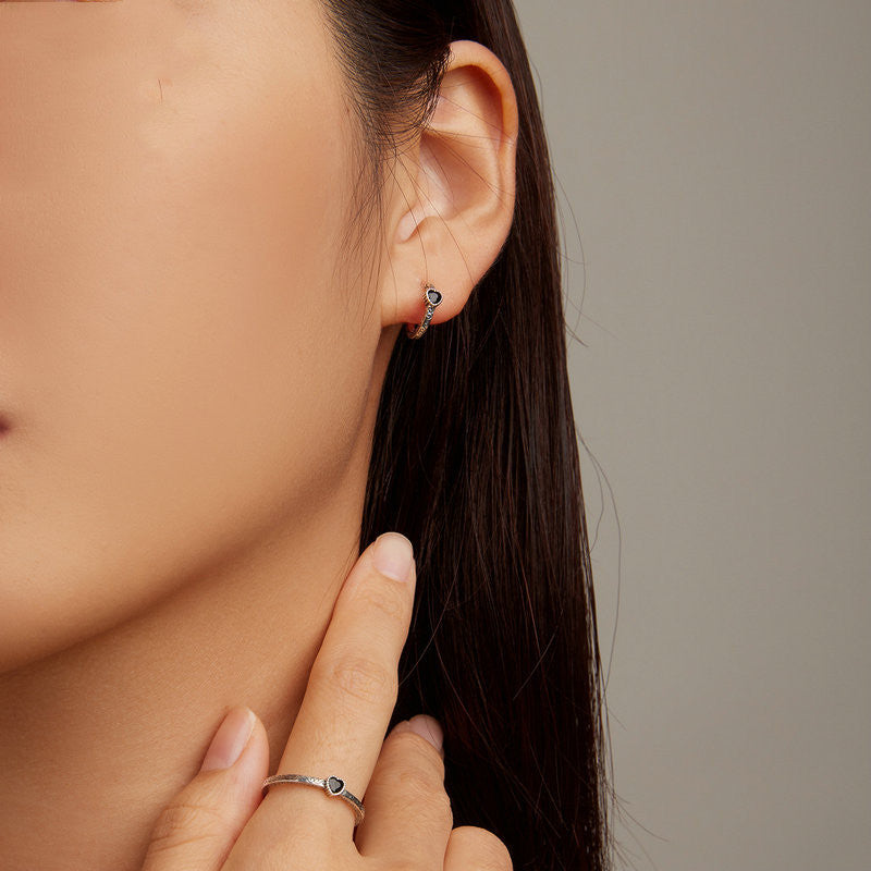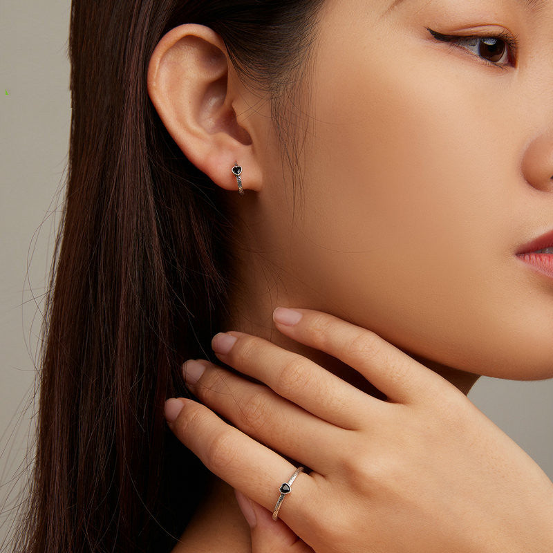 Vintage jewelry set with black zirconia ring and matching earrings