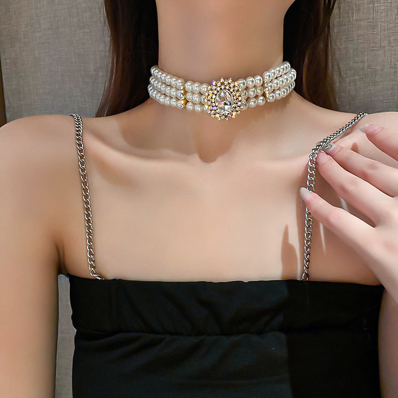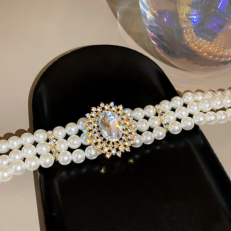 Dreireihige Perlenkette mit Schmucksteinen