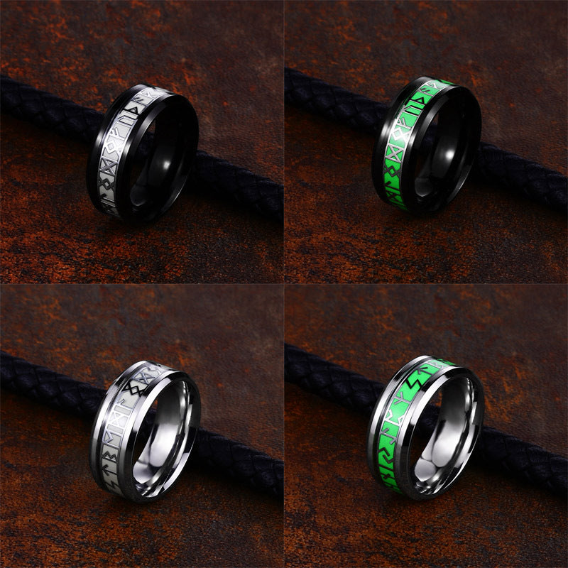 Leuchtender Edelstahlring mit Wikinger-Buchstaben