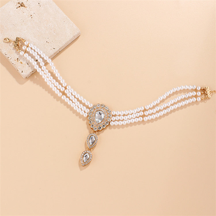 Mehrlagige Perlenkette mit Schmuckstein-Anhänger