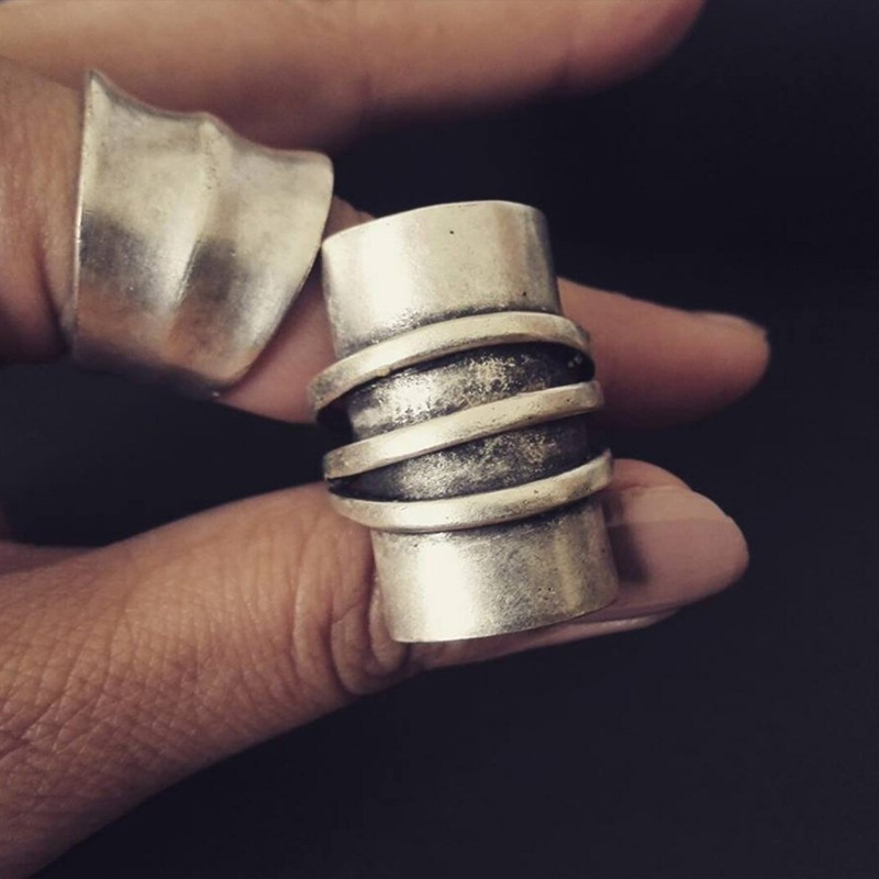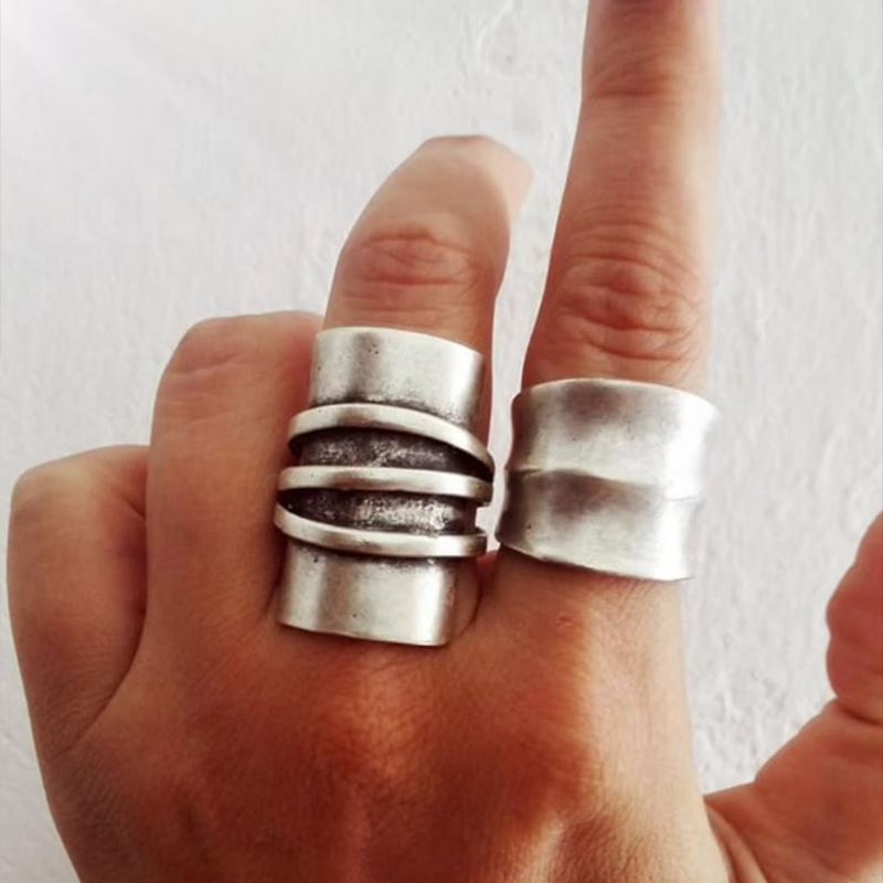 Retro-Ring mit übergroßem Kreis, individueller ethnischer Stil, geometrisches Design